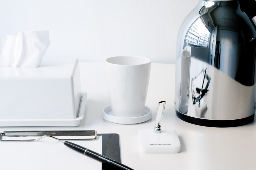 (宾馆客房用品。因为要在狭窄的空间中使用,且使用频率很高,设计多小巧结实。采用塑料中耐热性能最好、最结实的合成树脂。因为设计简单,没有多余的装饰,简单水冲就能保持清洁。图片来源 | D&DEPARTMENT)