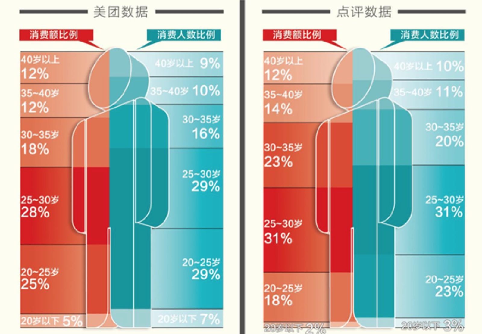 2016年外卖行业的入驻商家数量累计为245万家,相当于有近4成的餐饮商家与外卖平台达成了合作,除小吃快餐,火锅、烤鱼等种类的餐饮店也开始提供外卖服务。年轻人是外卖消费的主力军,在美团外卖、大众点评的App消费人数比例中,20至35岁的年轻人占比均为74%。而这类人群对于消费额的贡献占比也超过7成。